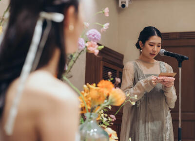 ガーデンウェディングを探していた中、ウェディングのサイトでリストランテASOを見つけ、夫婦共々気に入り、見学を申し込みました。式場の見学はASOが1件目でしたが、都心とは思えないほど緑が豊かで温かみのある会場で二人揃ってここで式を挙げたいと即決して契約しました。