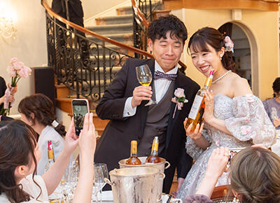 ゲストの皆さまに、これまでで1番美味しいお食事だったと、たくさん声をかけていただきました。特にワインは、普段から嗜む方もそうでない方からも、とっても好評で、披露宴後半では皆さま顔が赤くなっていました。ワイン好きな私たちにとって、とても良い思い出です。ゲストとの距離が近く、とても暖かい空間でした。