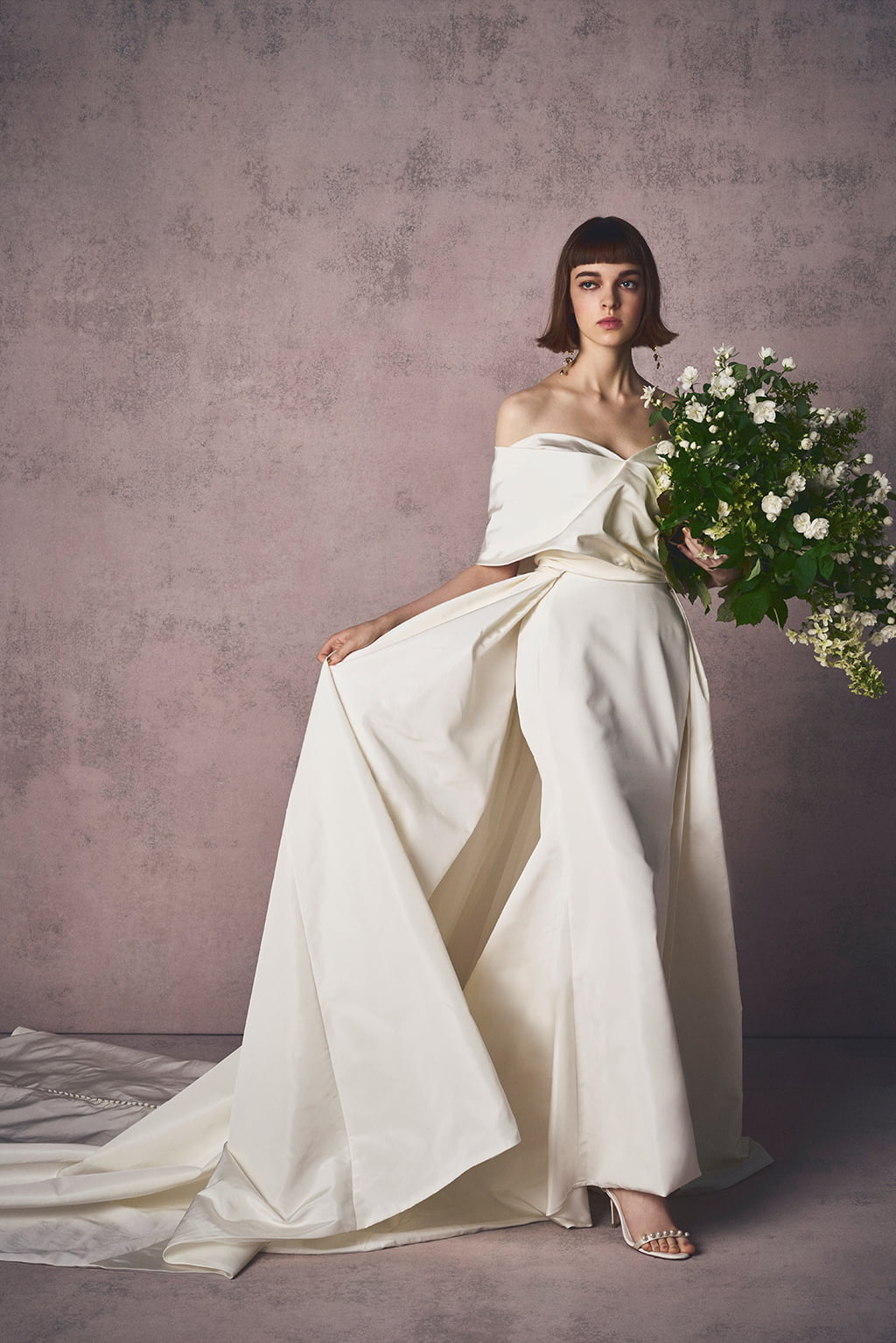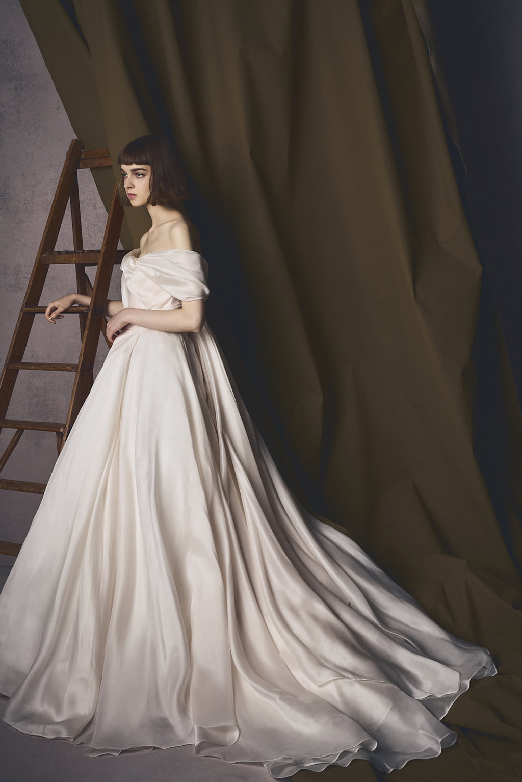 女性らしい柔らかく上質なドレスは、シンプルでありながらはっと目を惹く存在感。