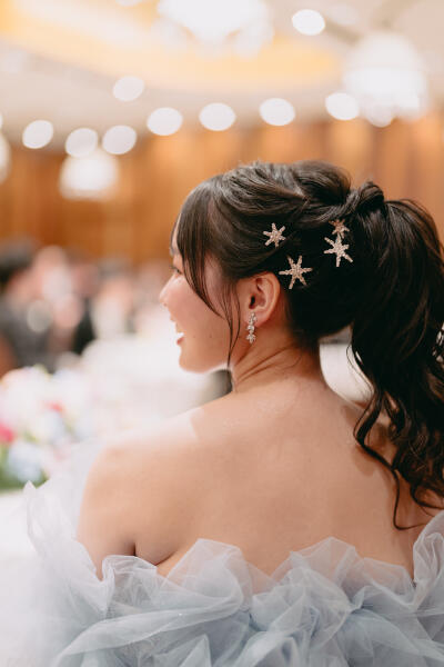 打ち合わせではプランナーさんがとても素敵な方で毎回楽しい時間を過ごさせていただきました。打ち合わせを重ねるごとに披露宴がどんどん楽しみになりましたし、これは難しいかもなと思う要望にも応えようとしてくれる姿勢がとてもありがたかったです。打ち合わせ以外の披露宴準備中もメールでの様々な質問や文章の添削などたくさんサポートしていただきとても心強い存在でした。本当にありがとうございました。