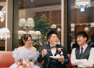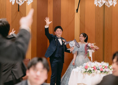 披露宴当日は頼れるスタッフさんの先導のおかげで披露宴はもちろんのこと、ゲストの皆さんとの歓談や写真撮影すべてがスムーズに進行していき無事に終えることができました。はじめはすごく緊張していましたが、サポートのおかげで楽しく過ごすことができました。近くにスタッフさんが笑顔でいてくださったのもとても安心できました。