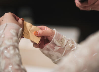 余興では、ゲストに事前にお配りしたワイングラスマーカーを、くじ引きとして使いました。
