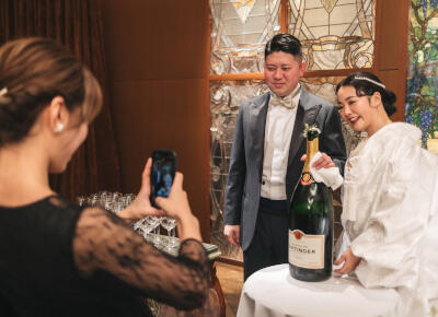 新郎を飲ませるのではなく、ゲストを飲ませるのも新しいのと、メインテーブルに来ていただく機会になり、ゲストと記念写真もたくさん撮ることができました!