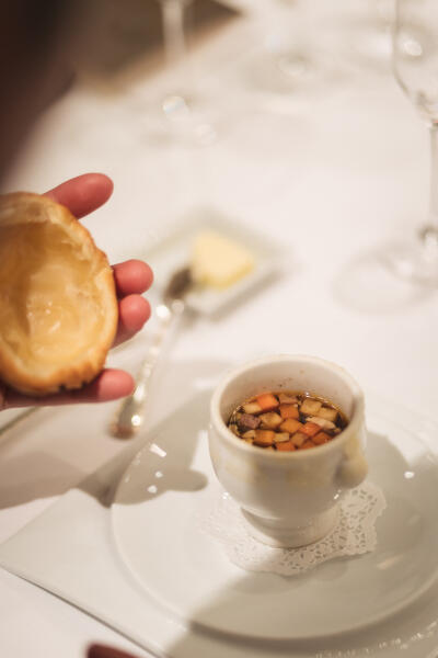 式場を探していたところ、雑誌に掲載されていたロッシーニとトリュフのスープの写真に魅了され、ブライダルフェアに参加しました。