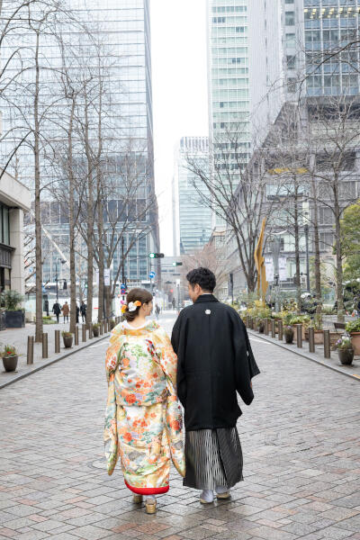 まず、挙式前後で異なる顔を見せてくれる東京駅前での写真撮影は記念に残りました。